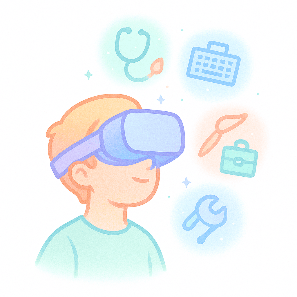 Explore real professions through short simulations, mock job-shadowing, live challenges, and direct Q&As with industry professionals — all within a carefully designed online program.